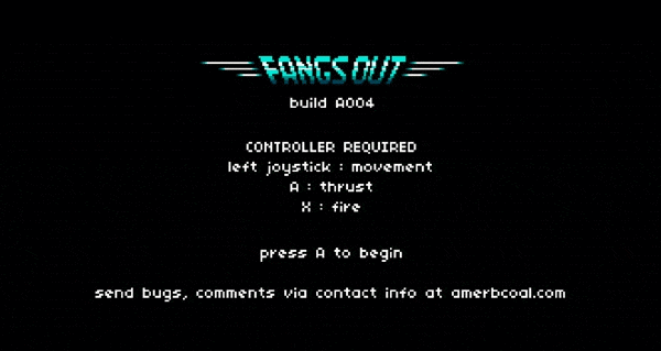 Fangs Out is an unfinished project inspired by Vlambeer's Luftrausers and the classic Atari Air Sea Battle.